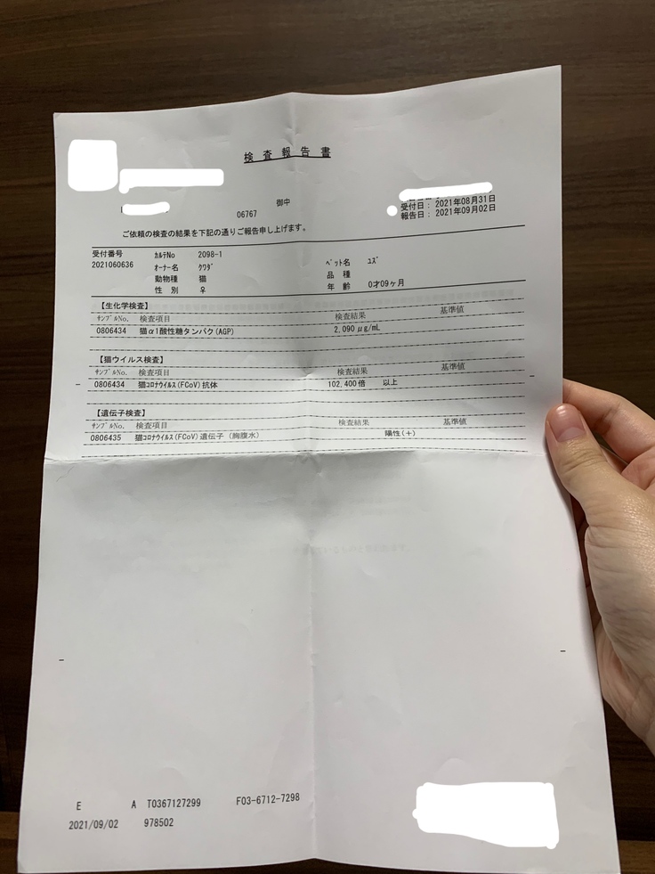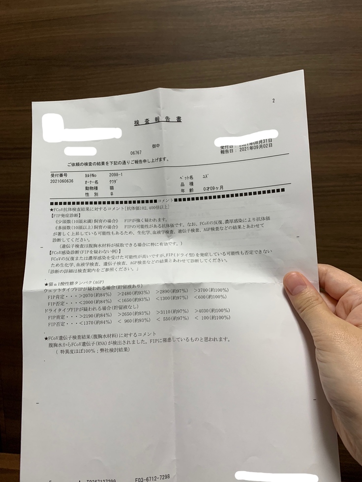 そこでFIPの混合タイプの中後期の可能性が非常に高いと診断されました。