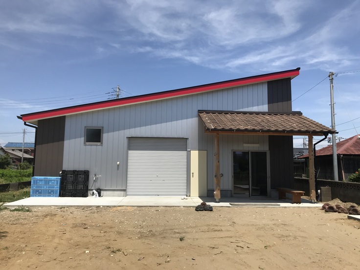 元々建っていた築100年の古民家の瓦を利用したポーチとお屋根の赤いラインが目印です。
