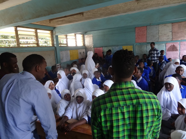 実際に小学校を訪問し、生徒に対して小学校を中途退学することのリスクを自らの体験に基づいて語り、学校に通い基礎教育を受けることの重要性を訴えかけるモラル教育を行いました。出席した生徒は100名を超え、3クラスに分かれて熱心にギャングの語りかけに聞き入っていました。