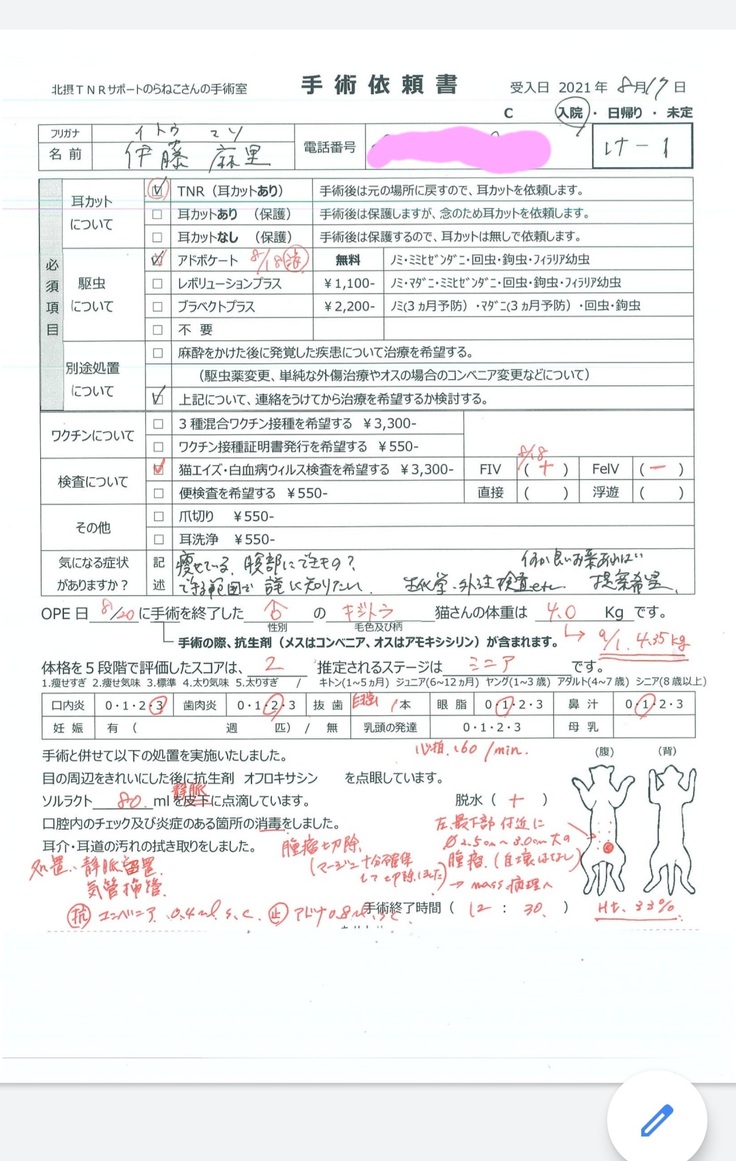 おでんくんも去勢手術してもらい、腫瘍の摘出手術もしていただきました