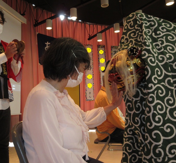 【獅子舞】は対象者の周りをまわってお祝いしてくれます。近くで見ると少し怖くてびっくりしますが迫力があり、会場の空気も変わりお祝いの目玉のひとつになっています😊