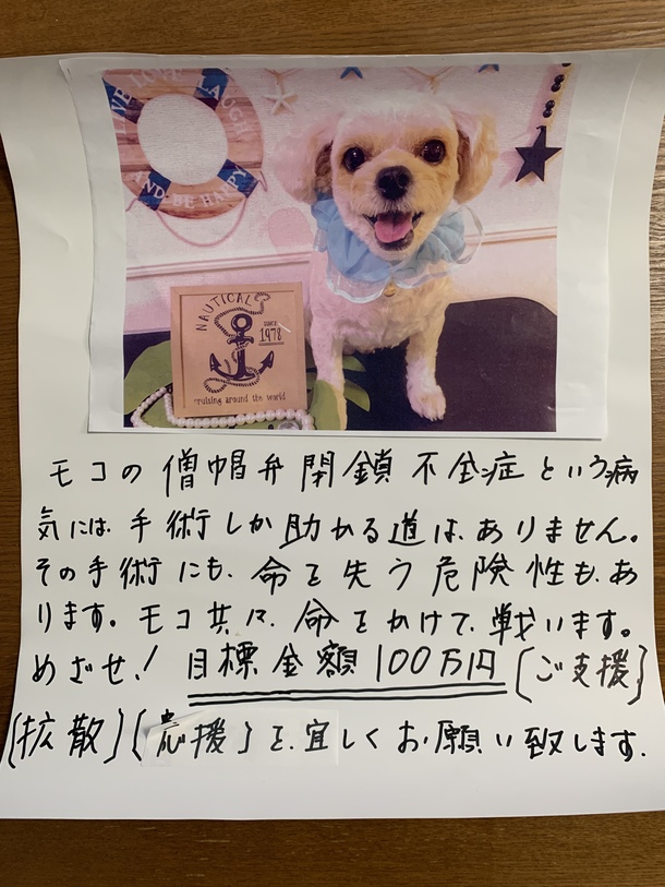 これまでの貴重な【ご支援】ありがとうございます😊モコの僧帽弁閉鎖不全症の手術費用の100万円までの道のりは まだまだ長いですが モコチャコ共にこれまで以上に頑張って行こうと思います。今日、1週間に一回の検診で、手術について少し🤏説明を受けました。
