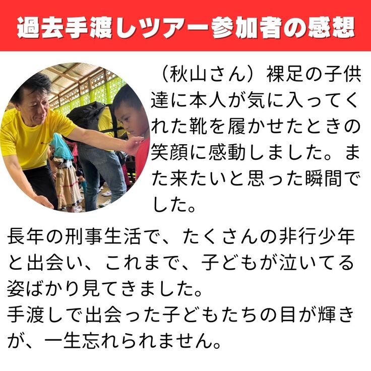 クラファンのリターン「タイ手渡しツアー参加コース」をご紹介いたします。