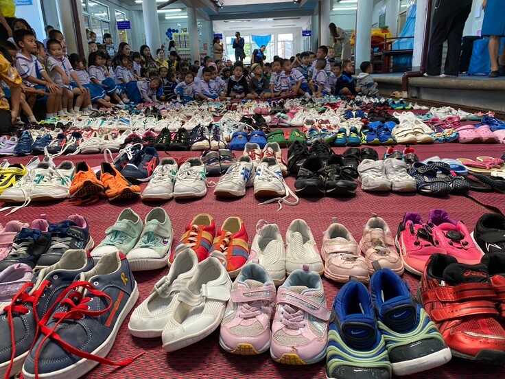 タイ北部の山の学校や幼稚園を訪ね、子どもたちに靴を手渡ししました。