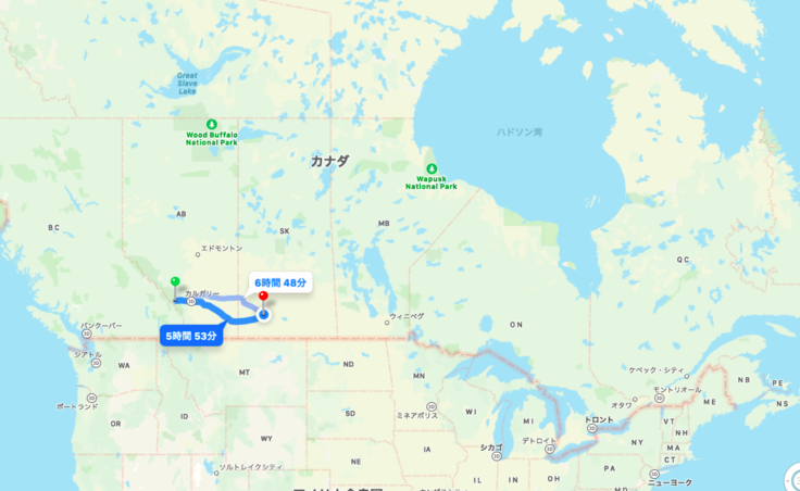 今日は、アルバータ州を抜けて、サスカチュワン州に入りました。約700km走りましたが、前日のロッキー山脈のアップダウンの多い道とは打って変わって、平らな道をひたすら進みました。