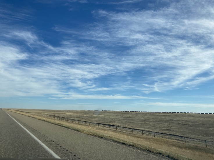 サスカチュワン州は農業が有名で、ひたすら大草原の間を走り抜けました。
