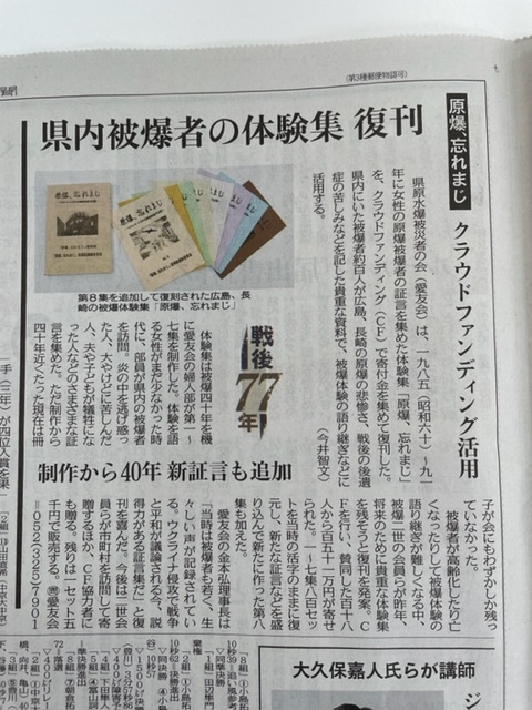 ・ご支援いただいた全ての方に、解説冊子編集委員会から編集中定期報告(毎月予定)を送ります。亡くなった被爆者の方が残された資料や掲載されなかった証言などを、編集中の議論を紹介しながら報告します。