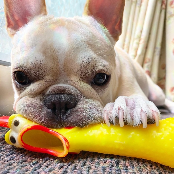 おもちは音のなるおもちゃが大好きです。とくにチキンのおもちゃ(我が家ではガーガーさんと呼ばれています。)が大好きで4代目です!!音のなるボールや、硬いおもちゃもすきです。甘えん坊で寝るときはぴったりくっついて、トイレにもついてくるかわいい奴です。最初はすべてに怖がっていて、ケージの外にでるのも、お風呂も散歩も初めてのときはいつも震えてました。今はお散歩大好きですが、息がきれてしまうためしばらく行けていません。。。怖がりで階段も下りられません。病院も嫌いでよく震えています。臆病で寂しがりやなおもちが頑張っているのだから飼い主が頑張らないわけにはいきません!