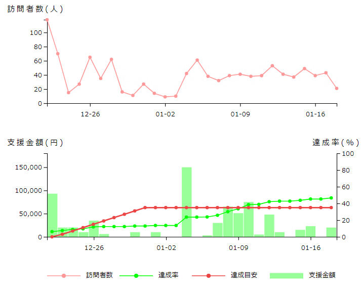 目標金額が150万と大きく、まだ半分集まっていないことに