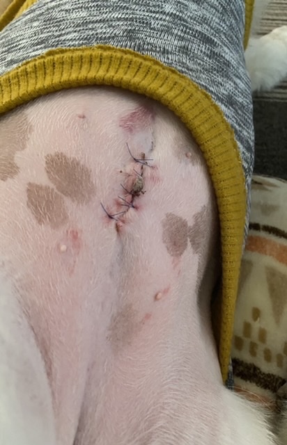 手術後は身体の体毛を殆ど剃られてしまって、寒く可哀想だから、傷を良く確認せずに服を着せました。