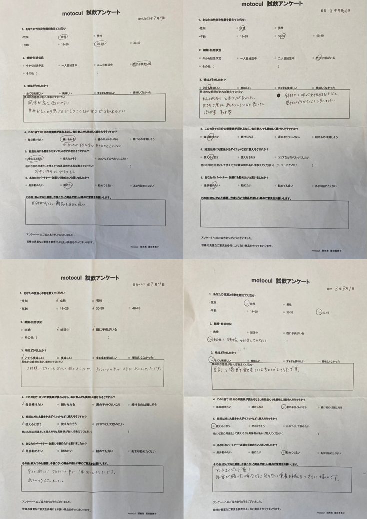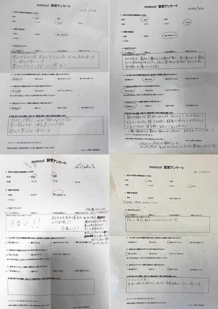 しかし、妊活サポートプロテインの構想を思い付き、これで同じように悩む方のお役に立てるのではないかと思うようになってから、気持ちが前向きになりmotoculの商品化に向けて取り組んでいく事にしました。