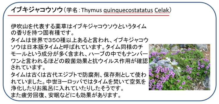 今回、私たちの伊吹山で育つ薬草の固有種イブキジャコウソウに深い興味を示していただき、いっしょに商品化を進めることにしました。