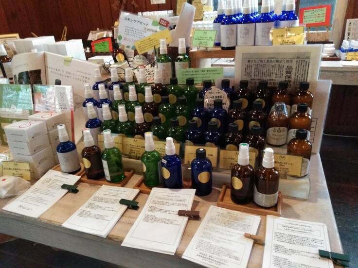 香寺ハーブガーデンは昭和59年(1984)の開園以来、研究開発型のハーブ園として農薬や除草剤を使わずにハーブを育てる一方、大学や研究機関の指導の元、抽出技術や発酵技術を向上させ、ハーブの有効成分、色素、香りを別個に取り出す独自の抽出機を開発。その技術をハーブティー、ハーブパウダー、ハーブを使ったスキンケア商品に生かすとともに、ゆずやお茶にハーブを加えて発酵させ、発酵過程で得られる二次代謝物質を抽出し、どこにもない高性能のエッセンシャルオイルなどを作っています