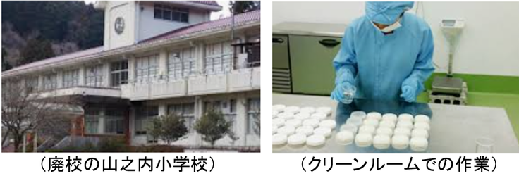 香寺ハーブガーデンの工場は姫路市夢前町山之内地区にある廃校になった小学校の教室を無菌のクリーンルームに改装し防腐剤等の化学薬品を一切使わず商品化します。限界集落でもある山之内地区に工場を構えたのは福岡社長の村を昔のように元気にしたいという思いがあるからです。