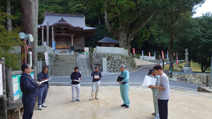 予てより護法祭にご支援いただいている、地元業者さんをお招きし、現地を歩きながら確認をしていただきました。