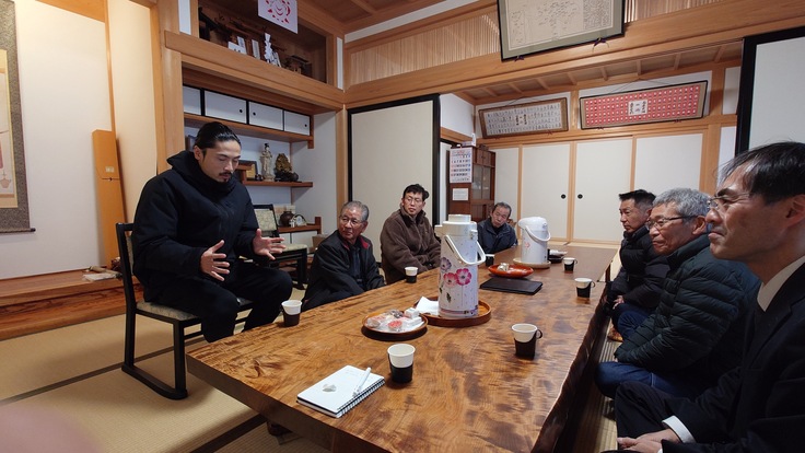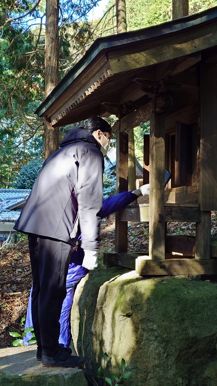 寒風吹く寒さ厳しい中、ご神体修復を手掛けていただく宮本工藝・宮本我休仏師さんにお越しいただきました。