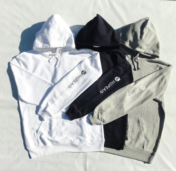 (写真:パーカーは、ホワイト/グレー/ネイビーの3色をS〜 XLの4サイズで展開。いずれも手作業での製作のため、お届けするお品は写真と多少異なることがあります。)