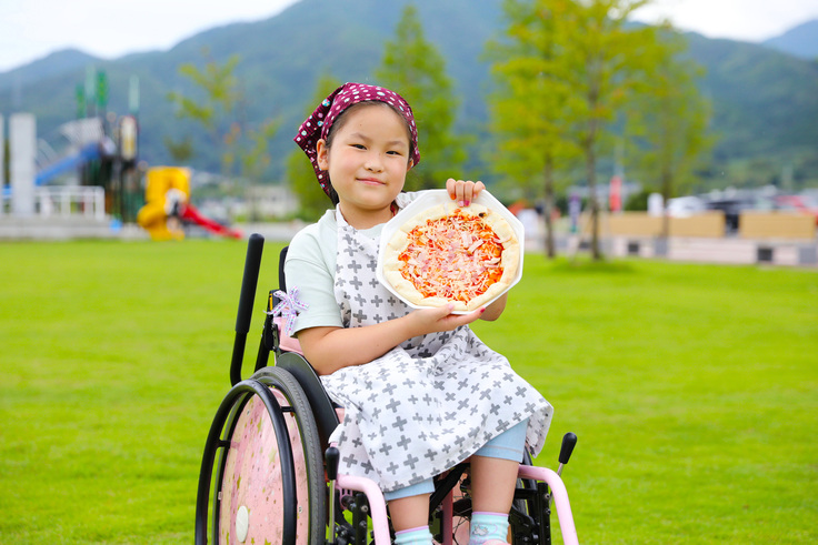 15時30分~16時30分 車いすの女の子 立ってピザ作り中継 ZOOM交流会