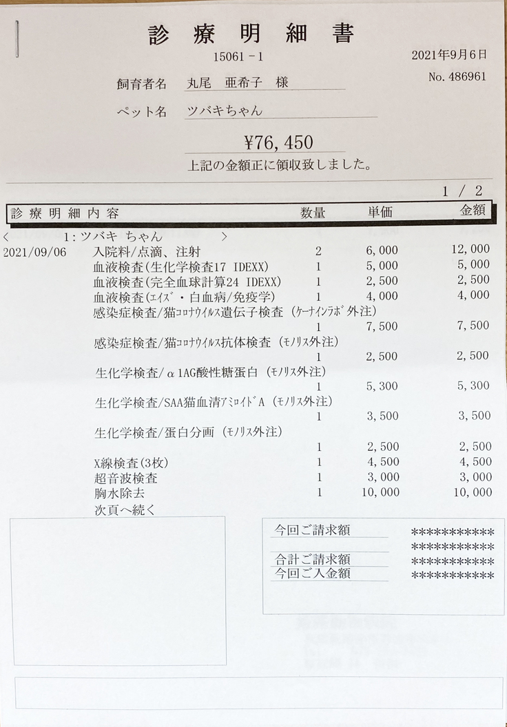 つばきのFIP治療の治療費に全て充てさせて頂きます。