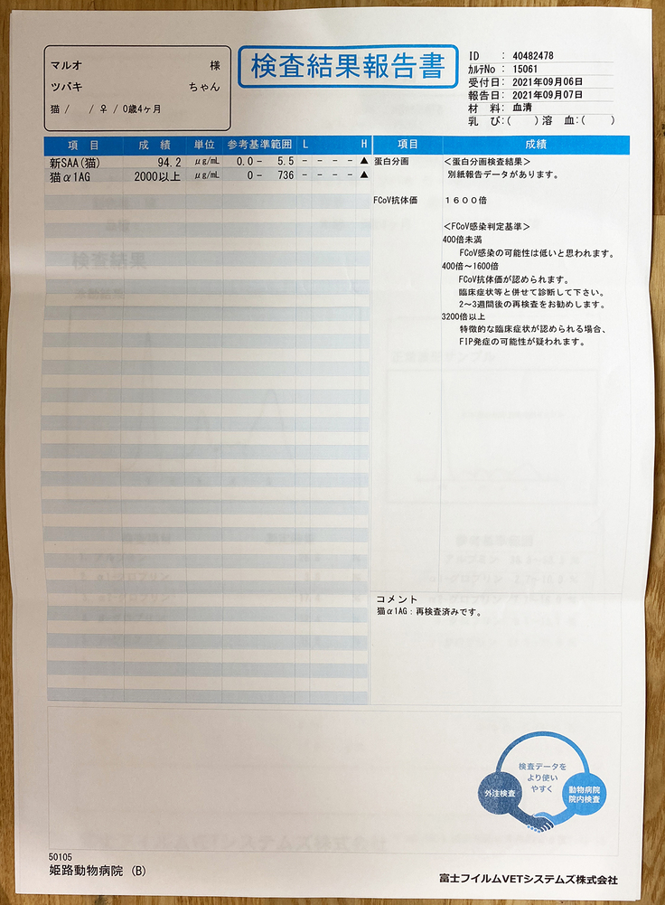 つばきの病状の変化に伴いFIP治療薬の投与量が2倍になったことが挙げられます。