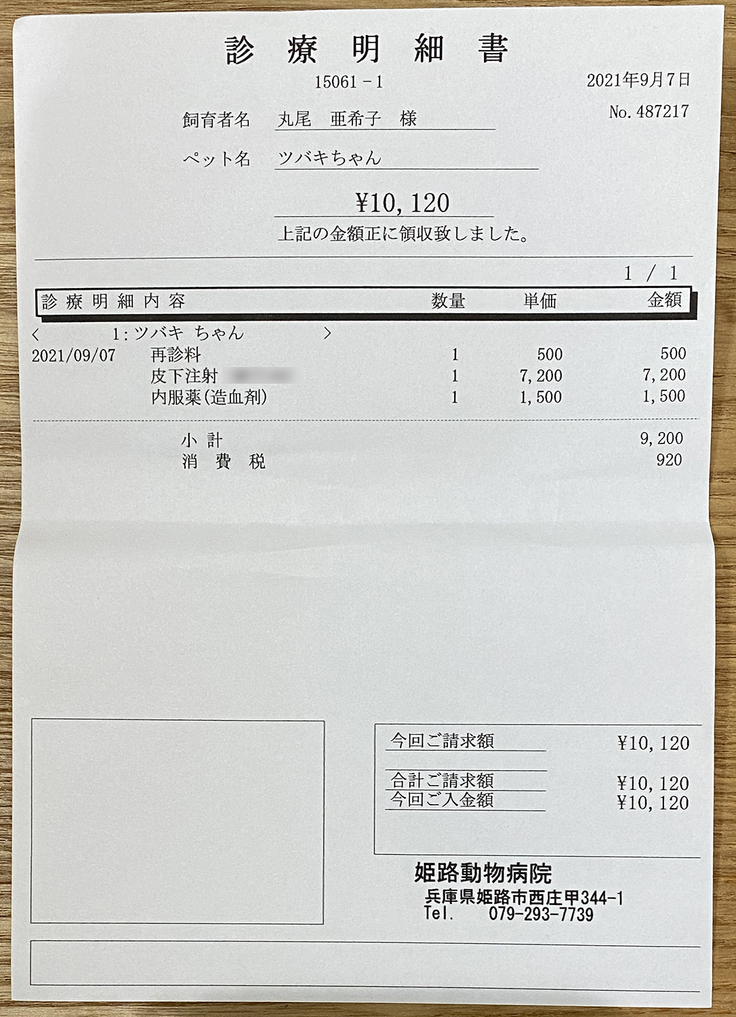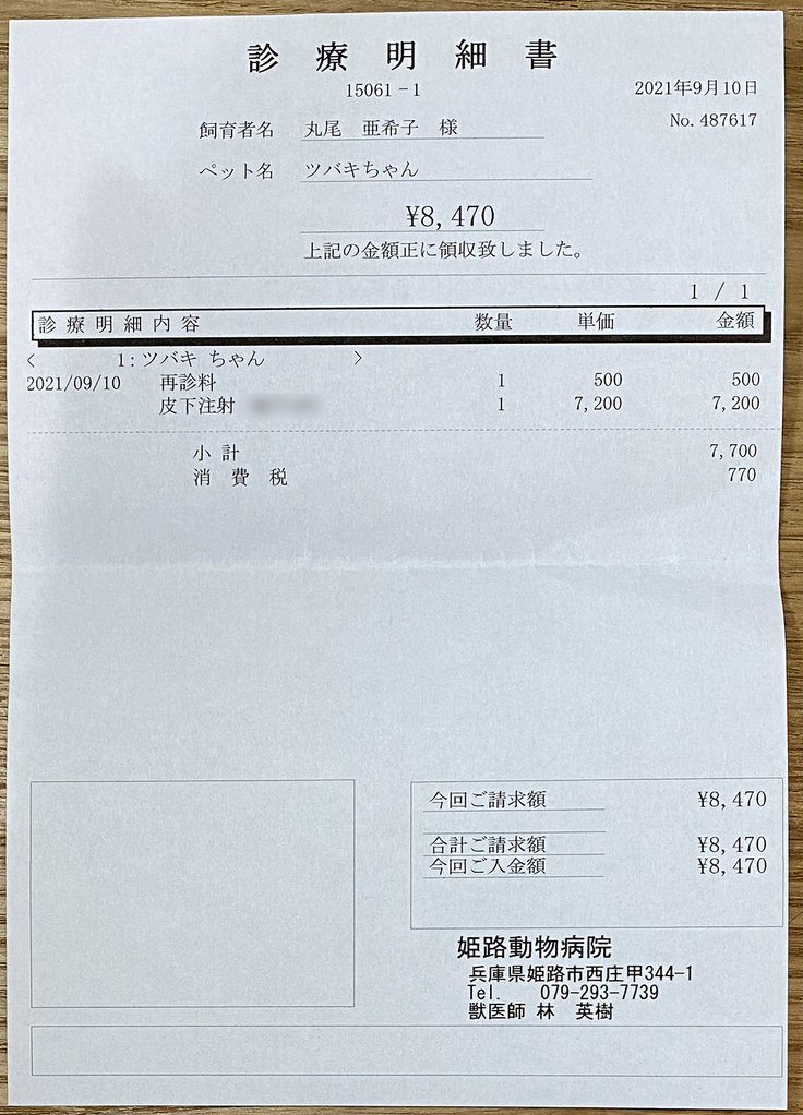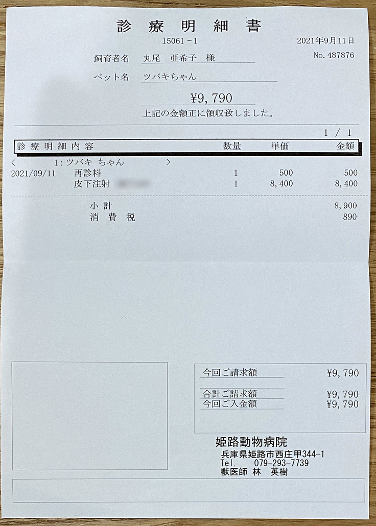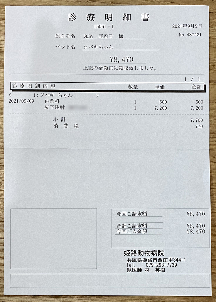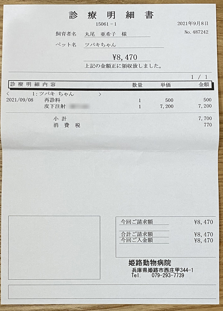 かかりつけ医にしている動物病院へすぐに予約を取り、診察してもらいました。