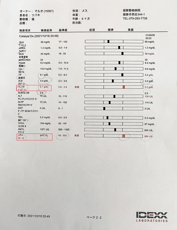 さて昨日はFIP治療薬投薬開始から6週目の検査日でした。