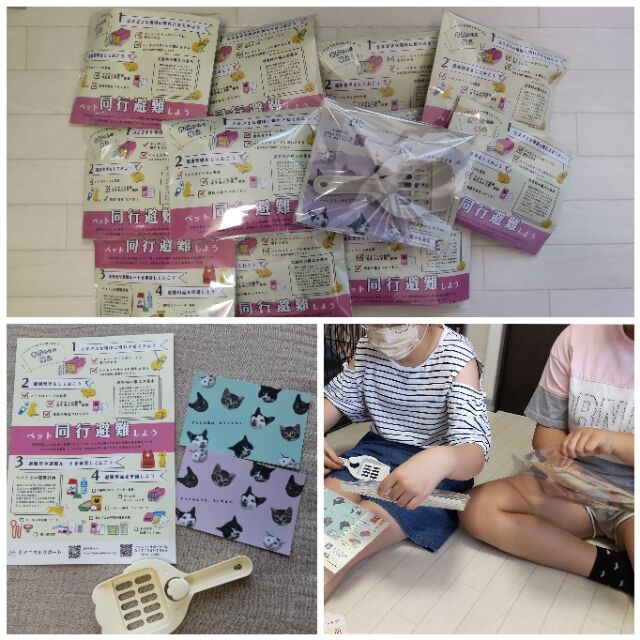 猛暑で外で遊べない子供達に、同行避難のチラシのラッピングを手伝ってもらいました。