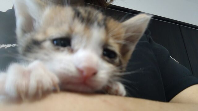 ちびちびくんは、7ヶ月のママ猫ミミちゃんの息子です。