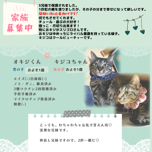猫を飼いたいお友達がいらっしゃったら、ぜひ、保護猫をご紹介ください☆