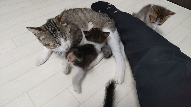 ☆7ヶ月のママミミちゃんと子猫たち☆レスキュー猫りおちゃん