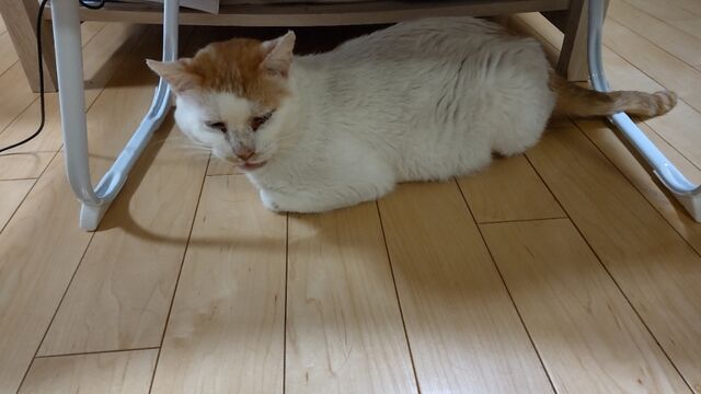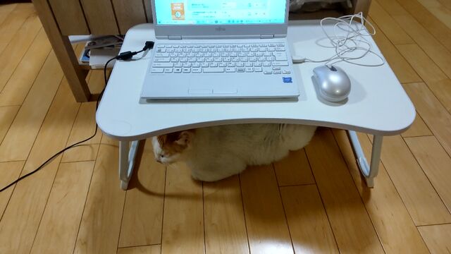 ちびたろうです。簡易テーブルで事務作業をしていると…