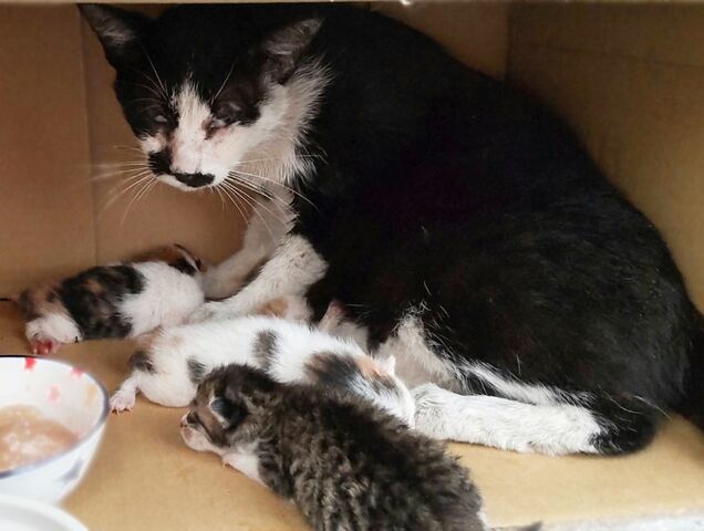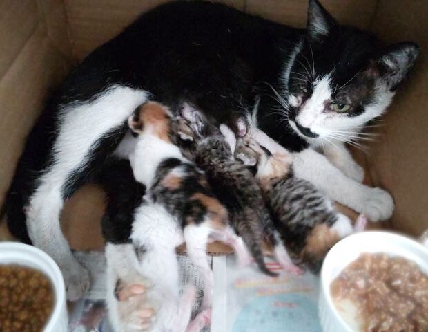 痩せていて、小柄な母猫です。今までの出産で、子猫は1匹も育たなかったそうです。