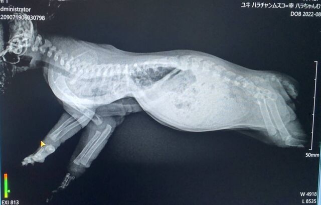 ハカハカと苦しそうに呼吸が乱れる1匹の子猫は、漏斗胸であることがわかりました。