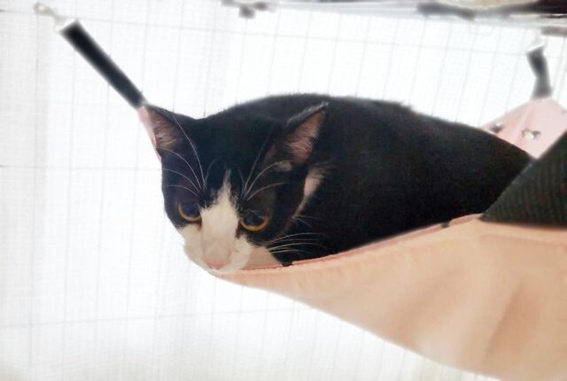 新しいおうちで安心してもらえるよう、ハンモックや猫砂など、匂いがついたものを、お持ちさせていただいています。