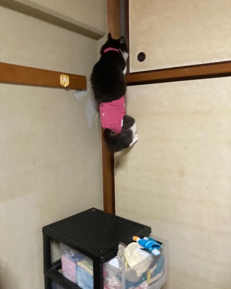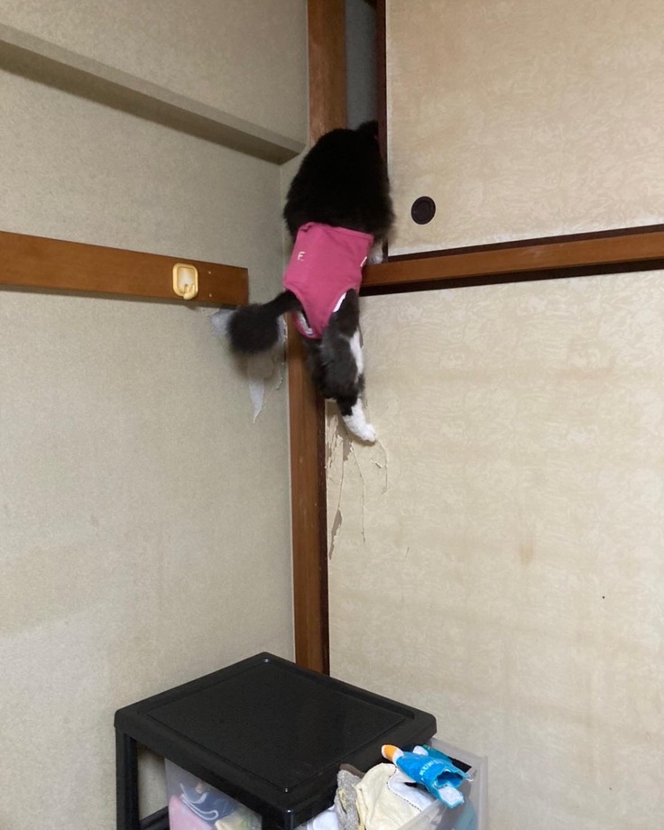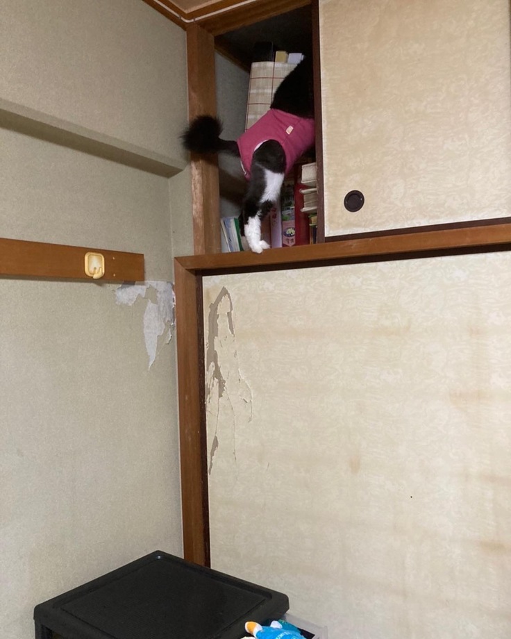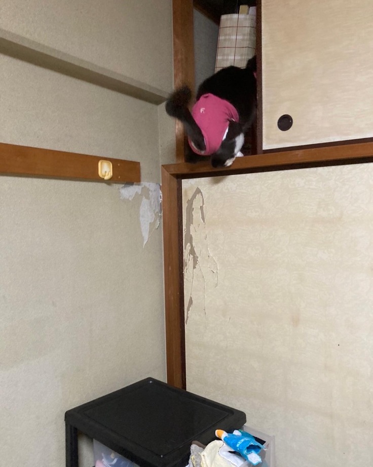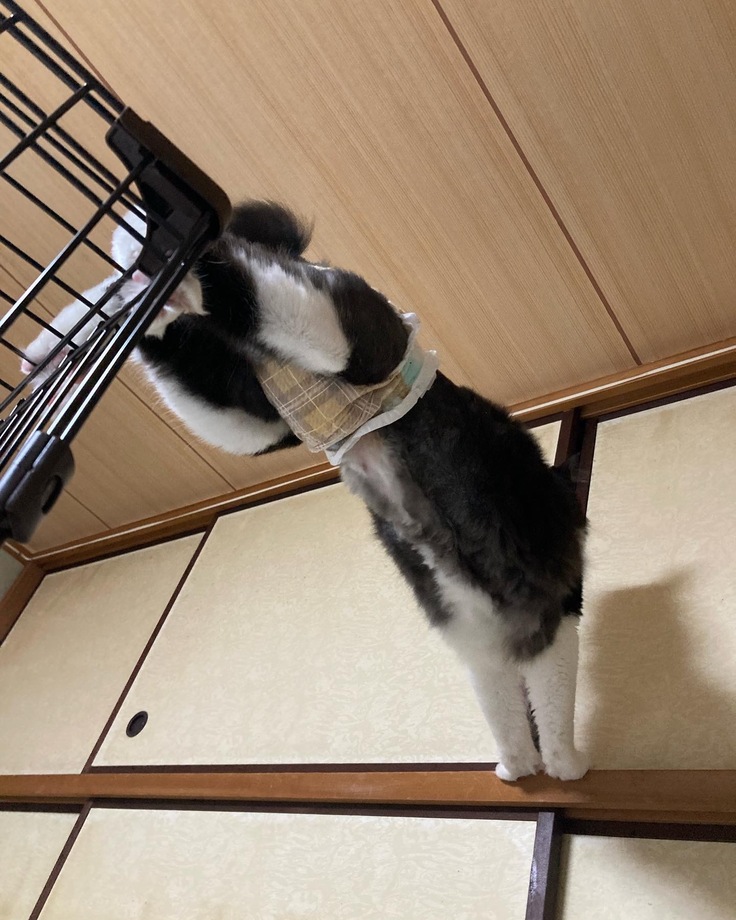 押し入れに何があるのか、興味津々でずっとこの行動が続きます。