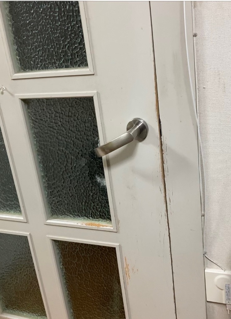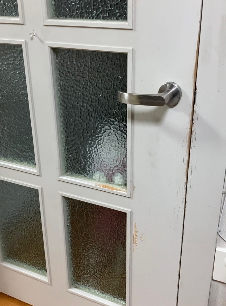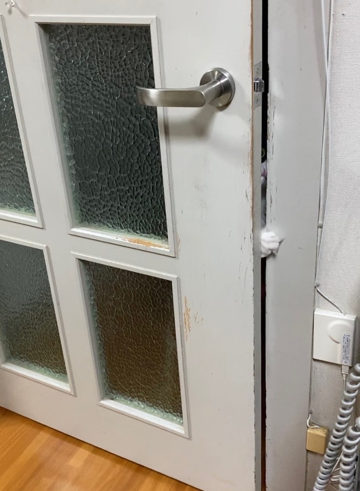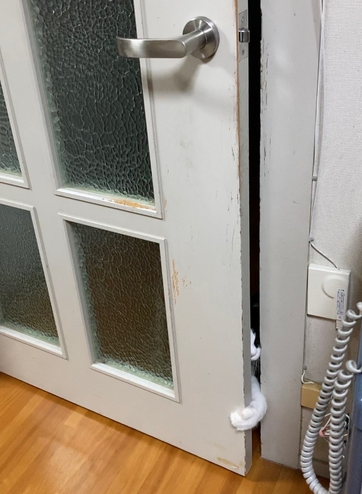 何やら、白黒の物体が 扉をガチャガチャ。。。。。