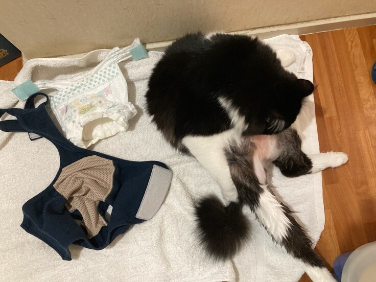 (ペット用のオムツより赤ちゃんのオムツの方がはるかに枚数多く安い)