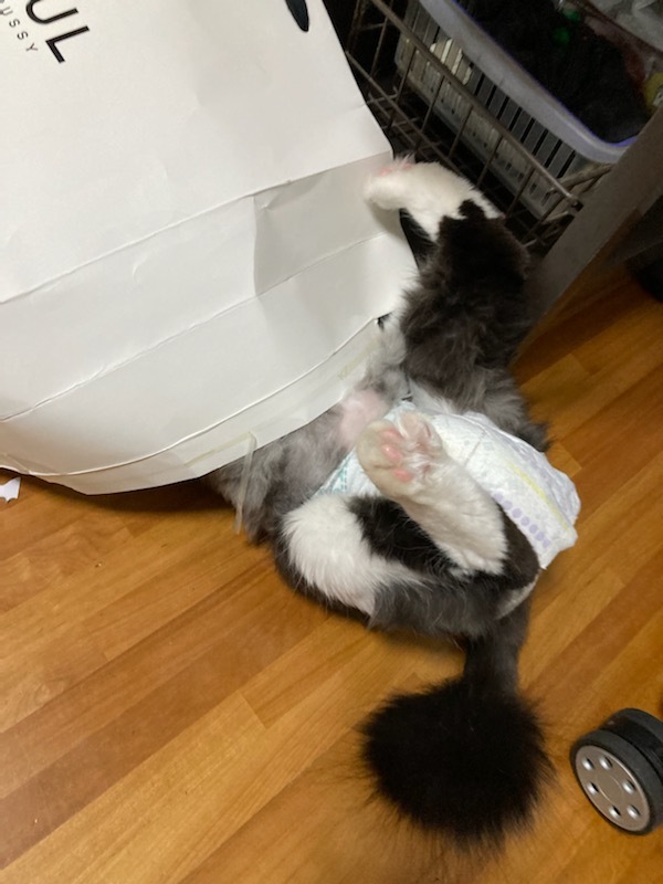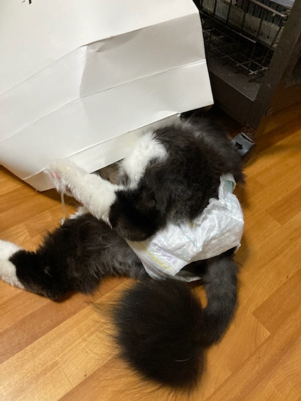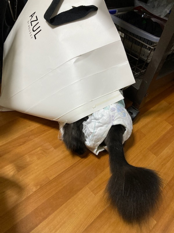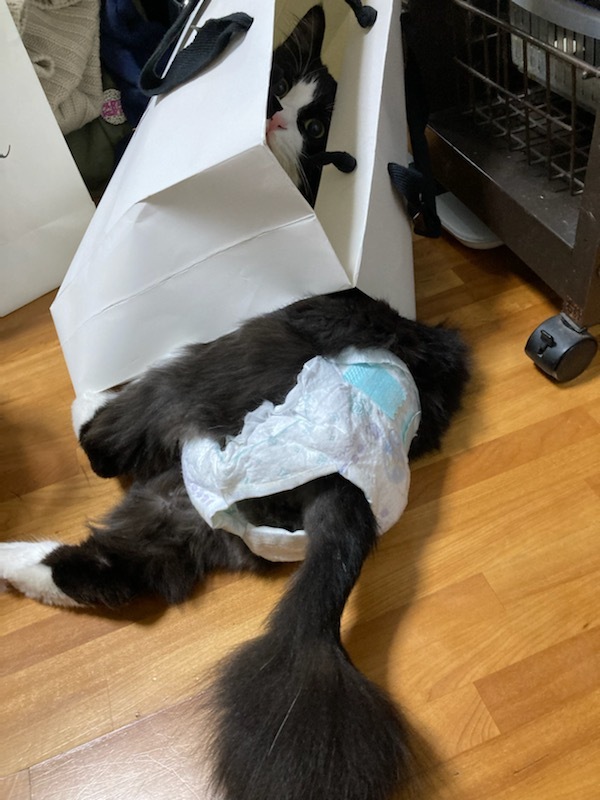 オムツも人間の赤ちゃんのパンパースのSサイズを、ハチ用に改造してしっぽの穴を開けて、使っていますが
