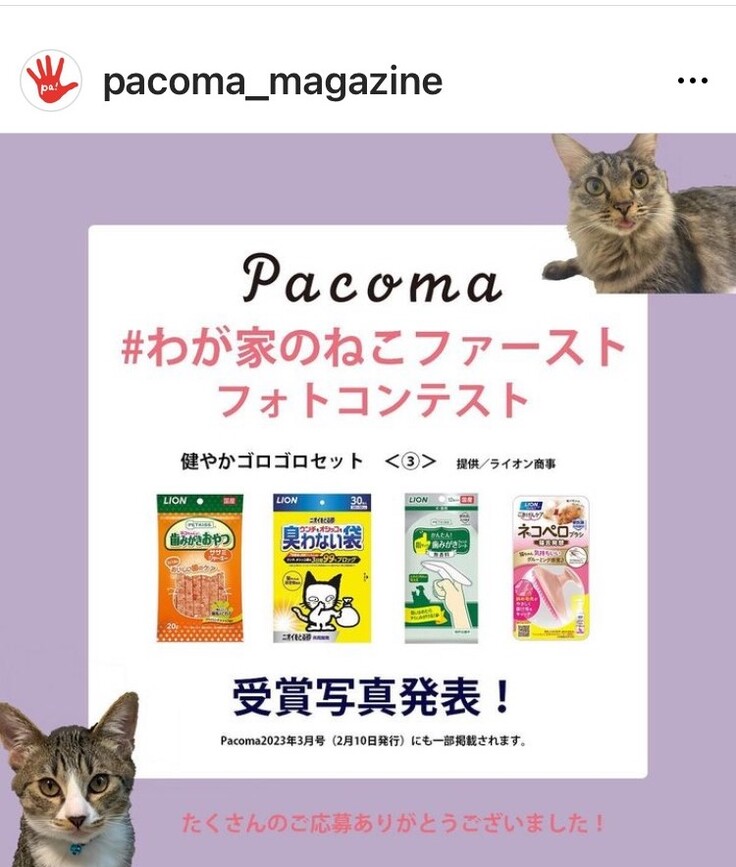 受賞した一部の猫さんが掲載されるみたいなので、万が一