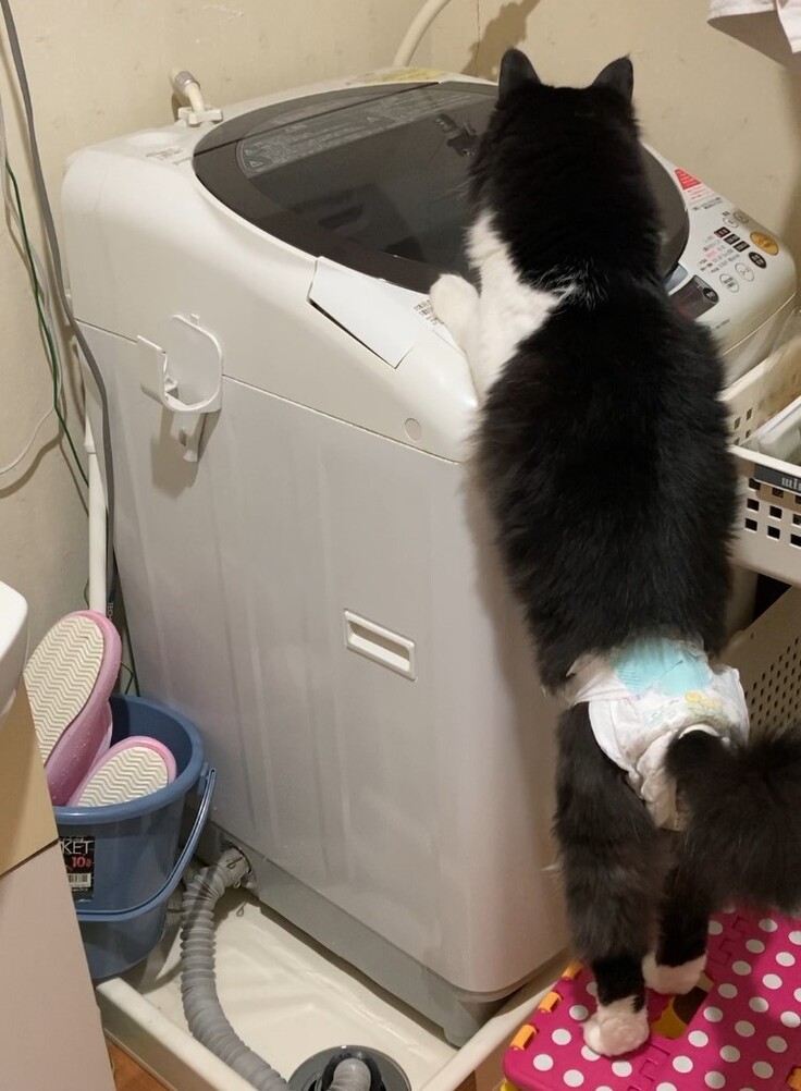 しばらく 回ってる洗濯機を見てました。