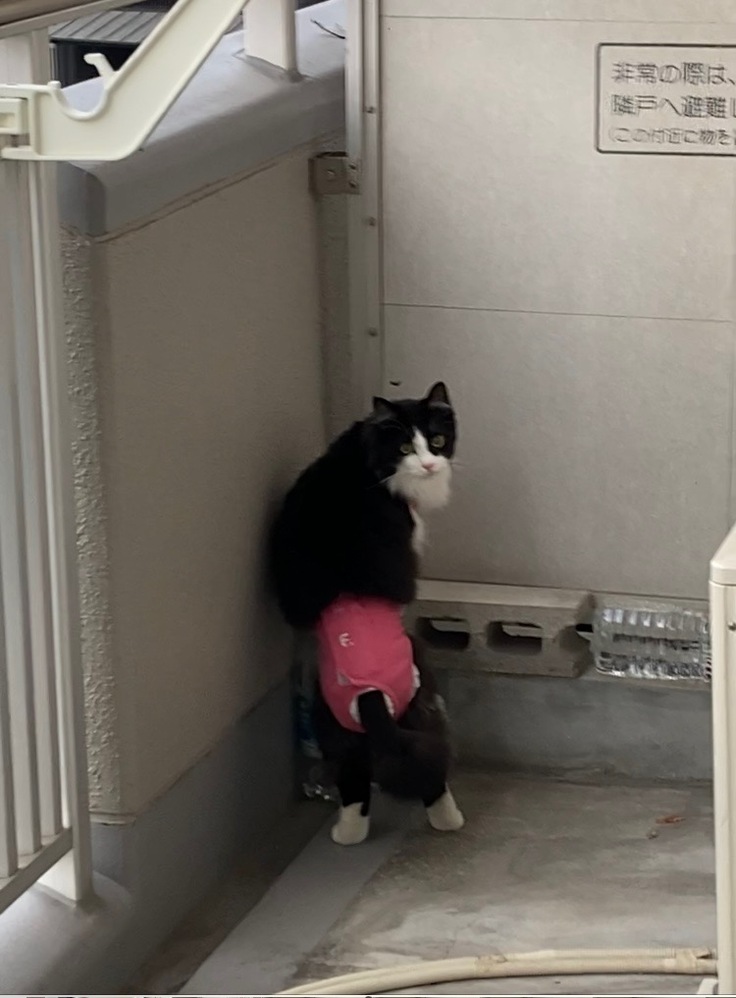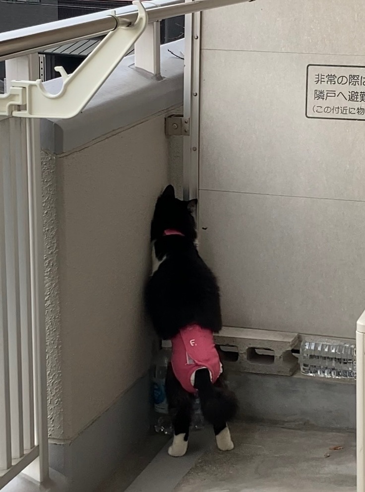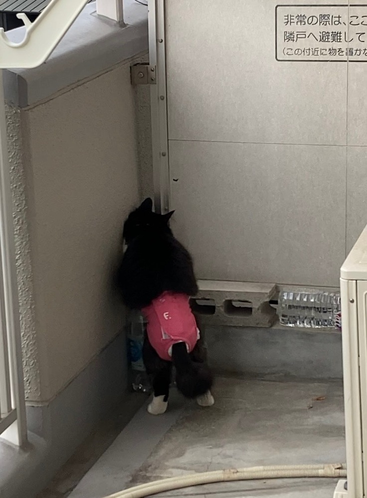 猫嫌いなお隣さんのベランダを覗き込むピンクパンツ野郎の映像がコレ。