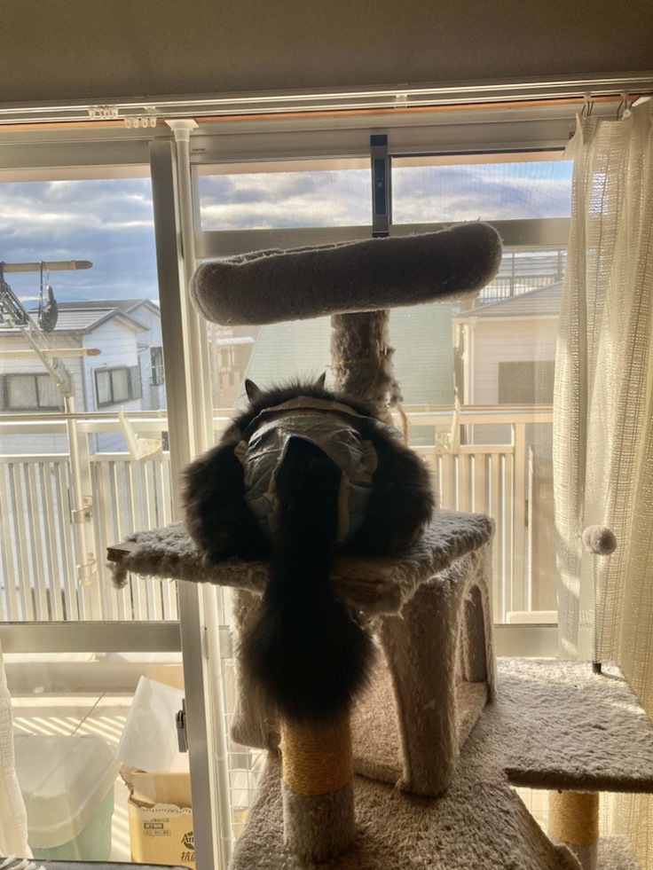 今ではキャットタワーも ネジが外れ、布が剥がれ 傾き、ボロボロ・・・・・