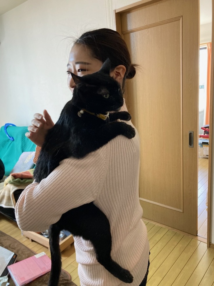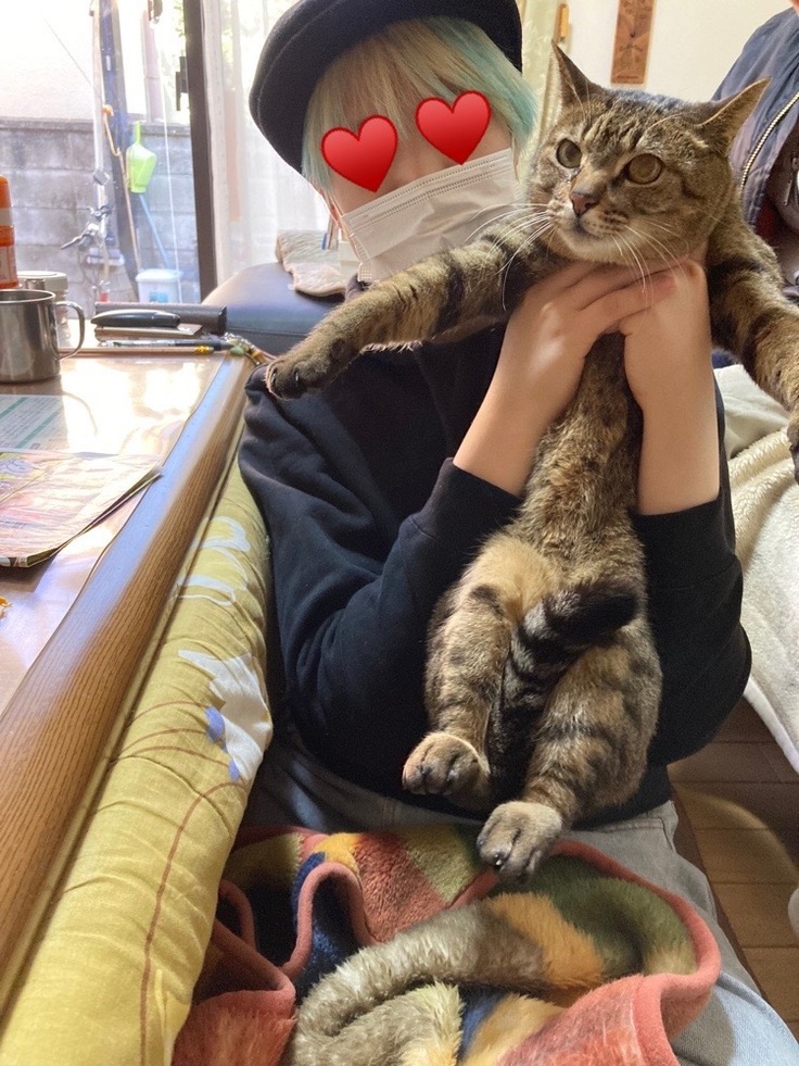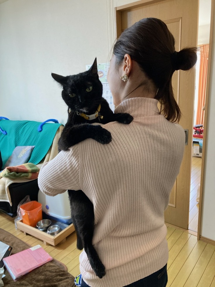 もう ばぁちゃん猫です。抱っこされて迷惑そうやなぁ・・・・