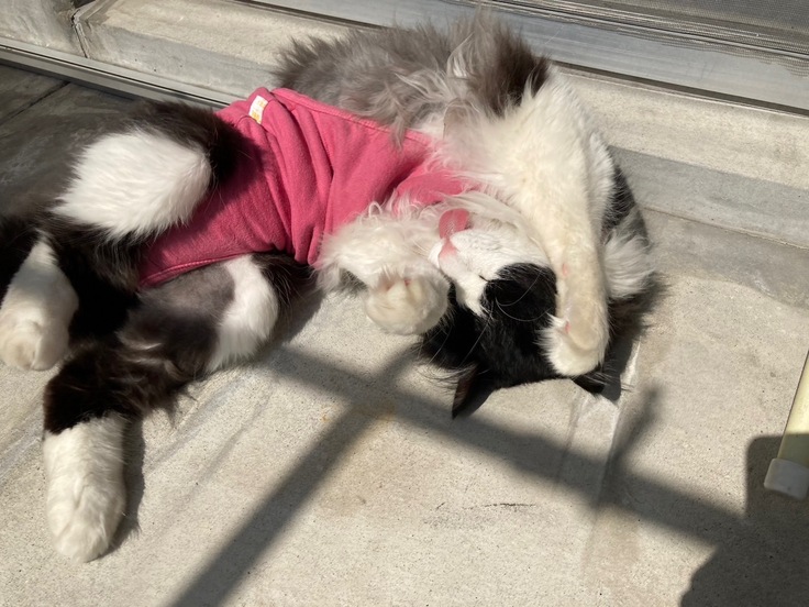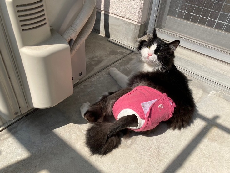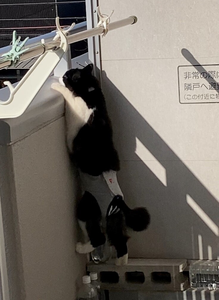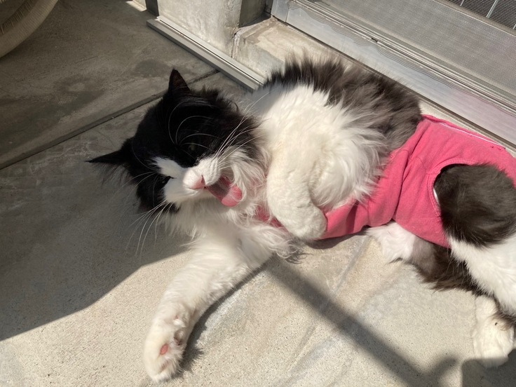 ベランダで埃だらけになって毛づくろい。ほんまに!ドキッとするわ