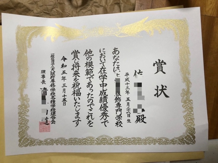 3月15日に 下の娘が服飾専門学校を無事卒業いたしました。
