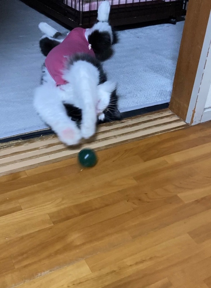 遊ぶのも寝たままで 怠慢なピンクパンツ野郎。