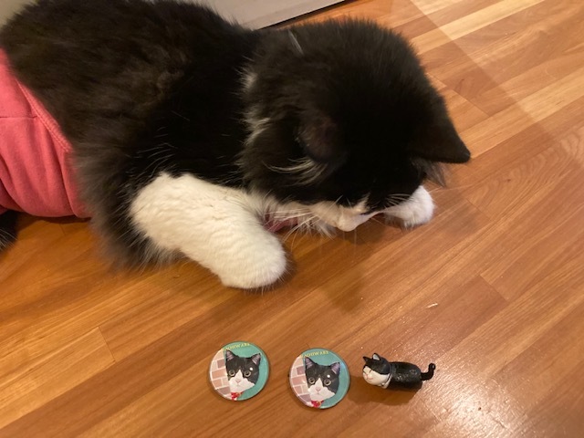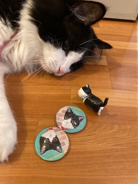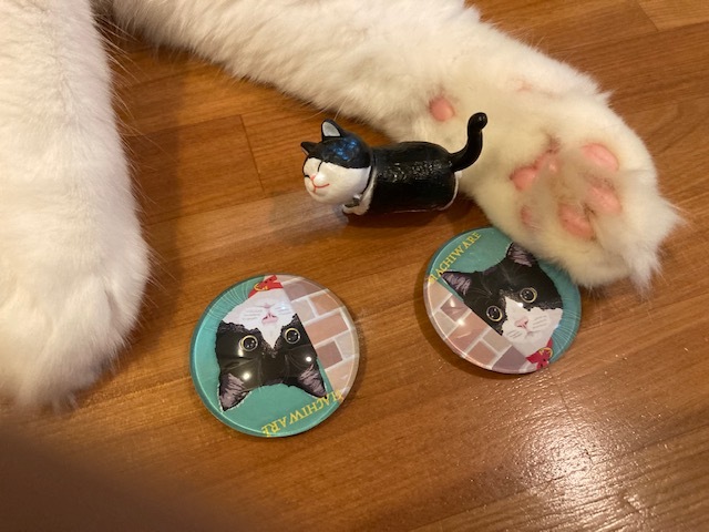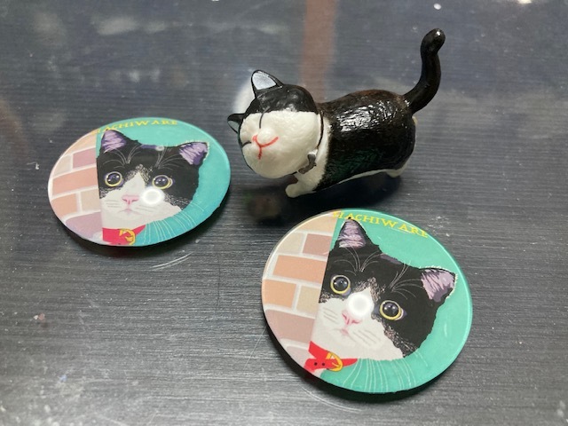 ハチそっくりなマグネットとハチワレ猫のミニチュアをいただきました。