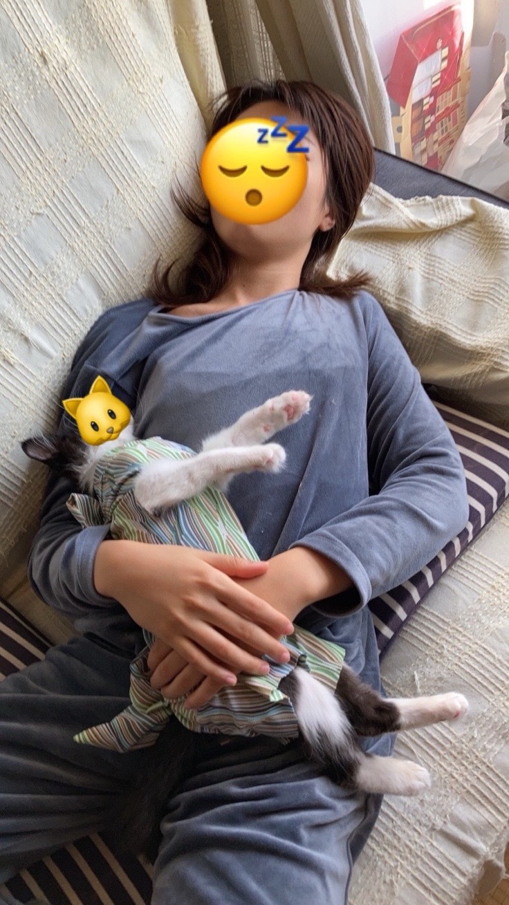 上のおねぇとは、よく一緒に昼寝してやったなぁ~ (なんでハチまで顔隠しとんねん)
