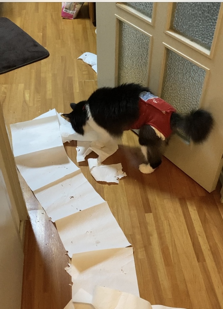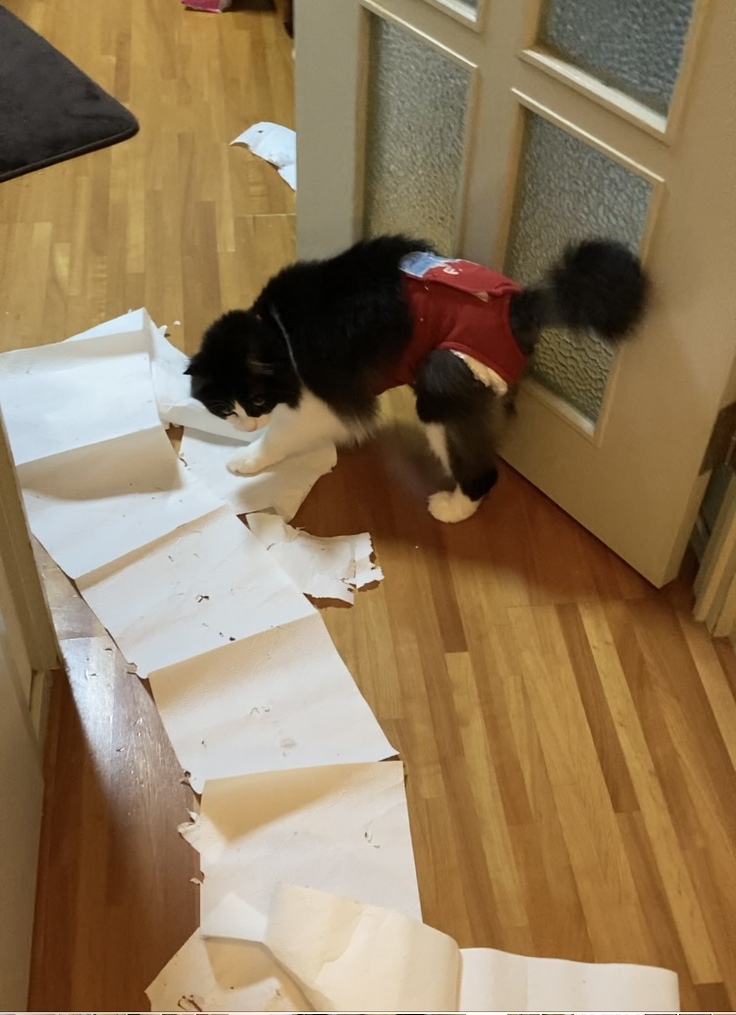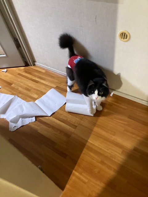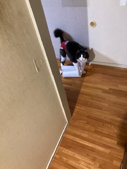 お風呂から上がったら、 何やら廊下に赤パンツ野郎が。。。。