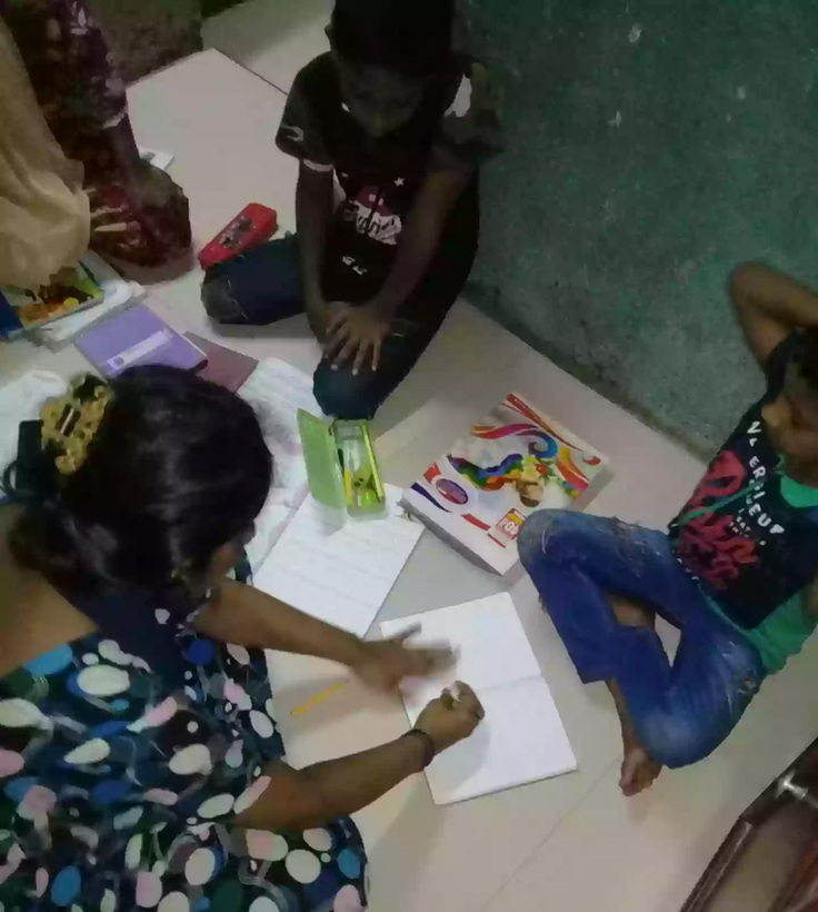 In spite of this difficult situation, children voluntarily started to teach each other and are keep learning. For this 1 and a half years, after March 2020, our school has been physically shutdown. Neighboring children gather in the house in the lane and are connecting to internet online classes run by volunteer teachers.